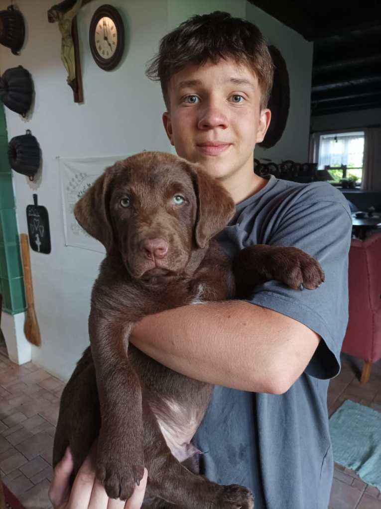 Cierny chlapcek je krasne steniatko, velmi sa podoba na svojho otca Frantiska. Ma vacsi biely znak na hrudniku, krasnu srst a je to aspon zatial velmi odvazne a pri tom kludne steniatko, velky mojkac😍vyzera to tak, ze tento chlapcek bude lamac srdc❤️