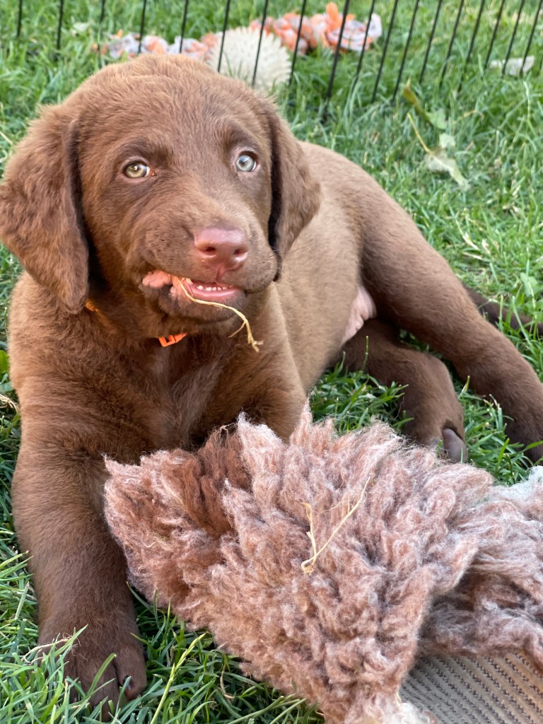Burberry nám rastie do krásy, je to typický CHBR rarášek, ale velmi milá, kontaktná a nebojácna. Fenka bude zrejme vhodná aj na výstavy, má nádhernú výraznú hlavičku a krásnu farbu.