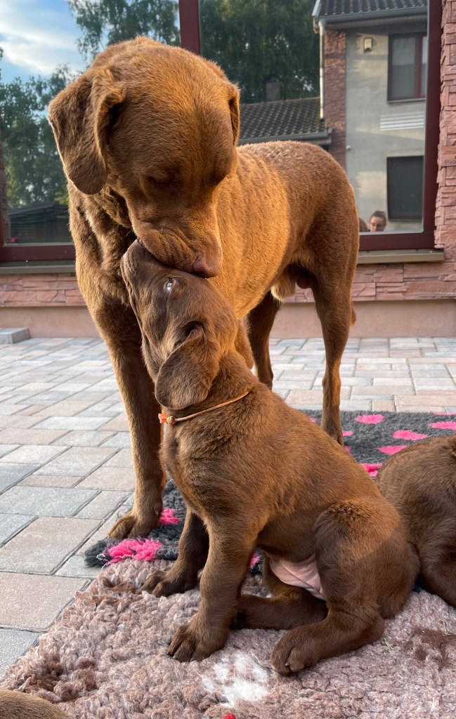 BURBERRY je čoraz krajšia a milšia, bude to zrejme fenka strednej veľkosti a pevnej kostry, vhodná na prácu aj výstavy. Vhodná však aj do rodinky bez týchto ambícii ako rodinný miláčik.