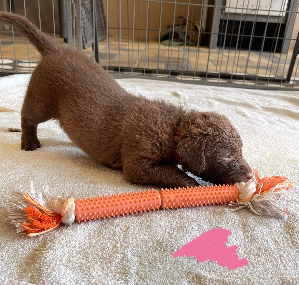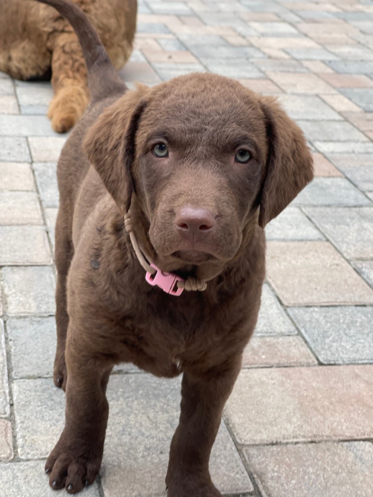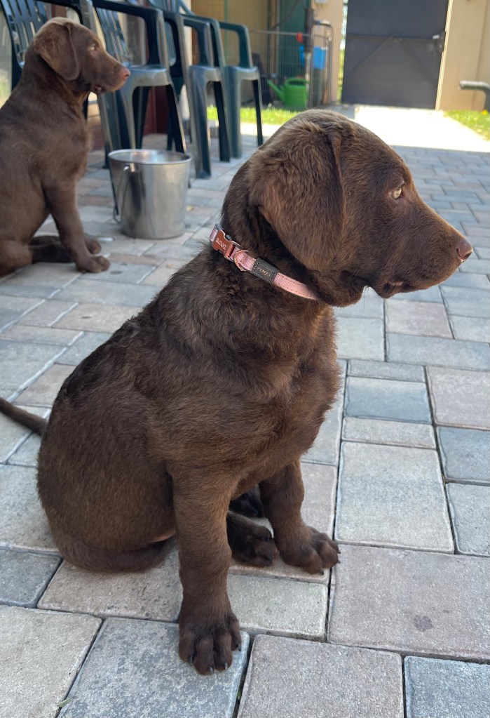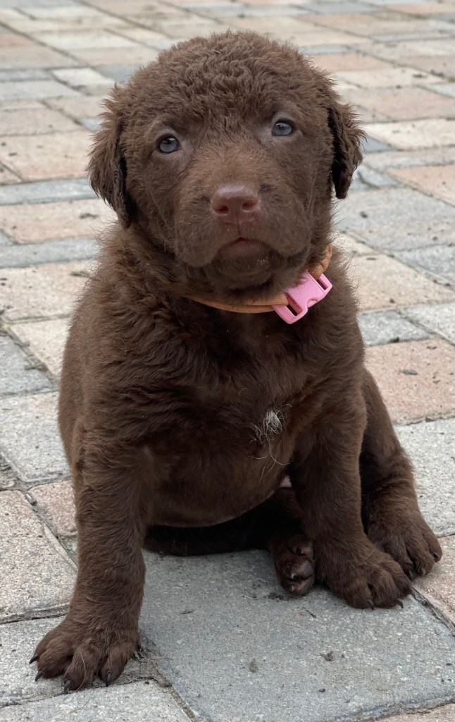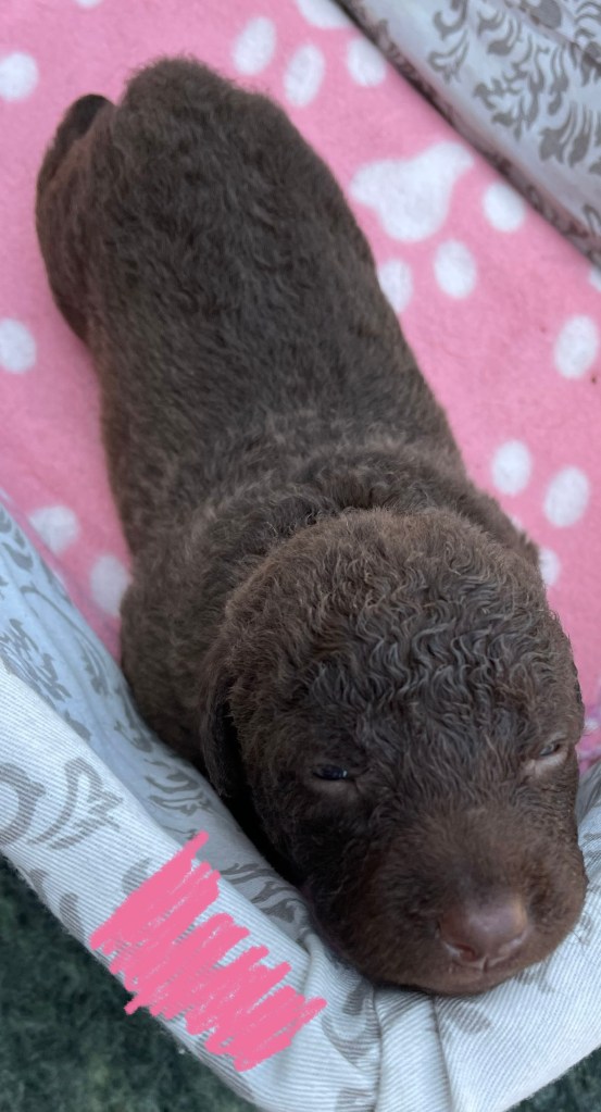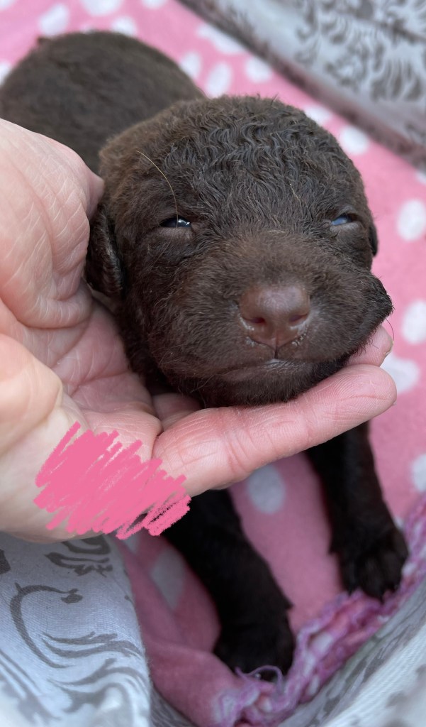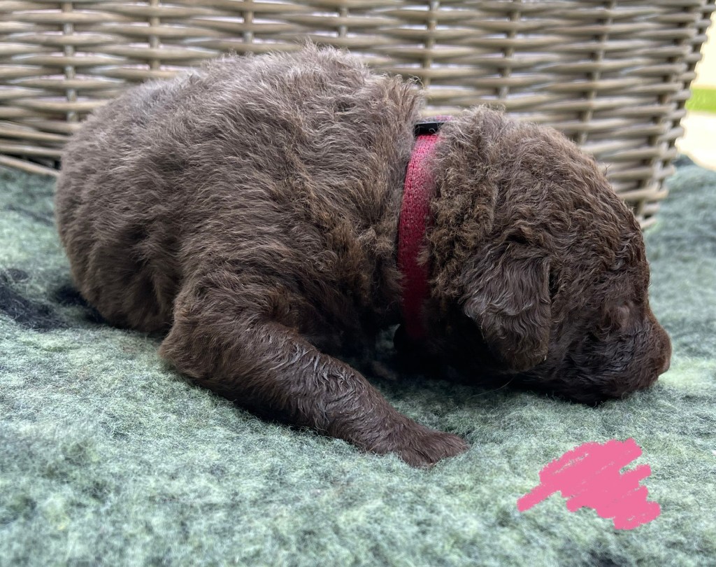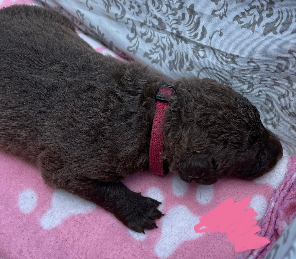 Ruzova fenka bola najmensie steniatko z vrhu a stale ostava najdrobnejsia😍ma nadhernu tmavu kudrlinkatu srst s malym bielym fliacikom na hrudniku. Javi sa ako nadherne a velmi kludne steniatko😍ale napriek vsetkemu je velmi zivotaschopna a odvazna🙏